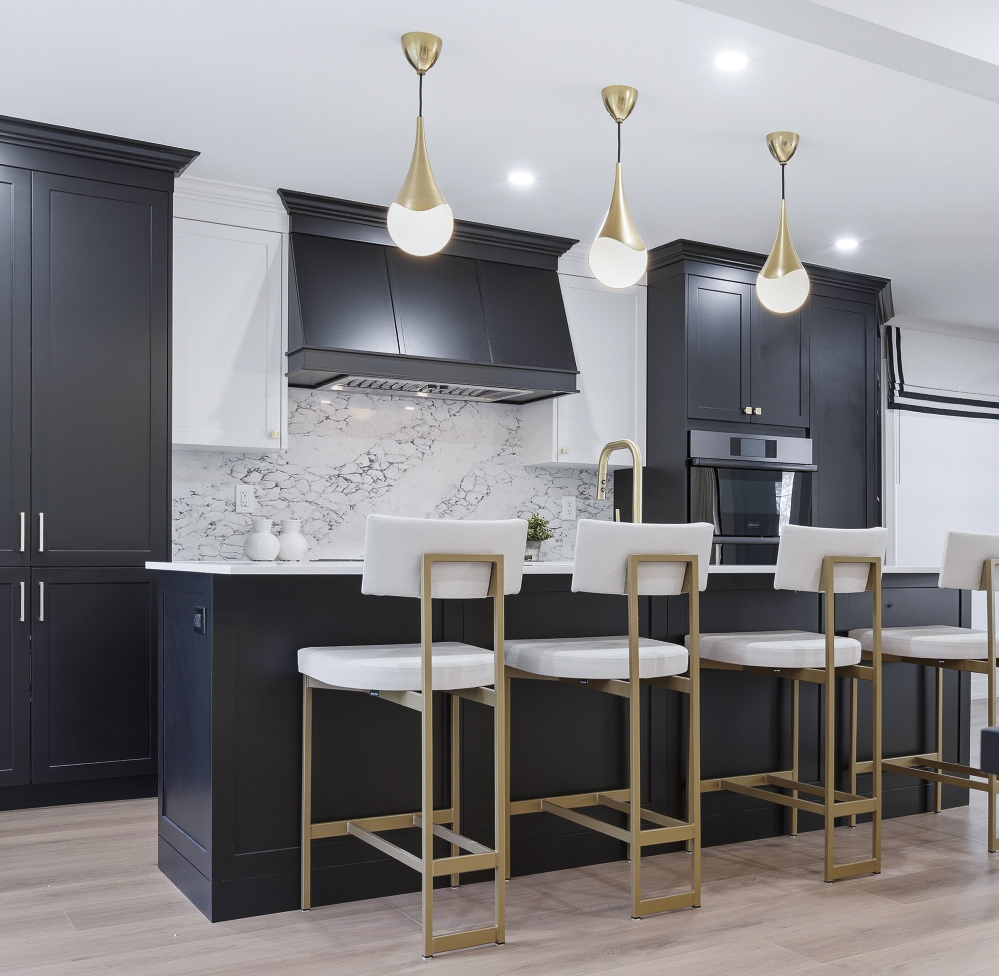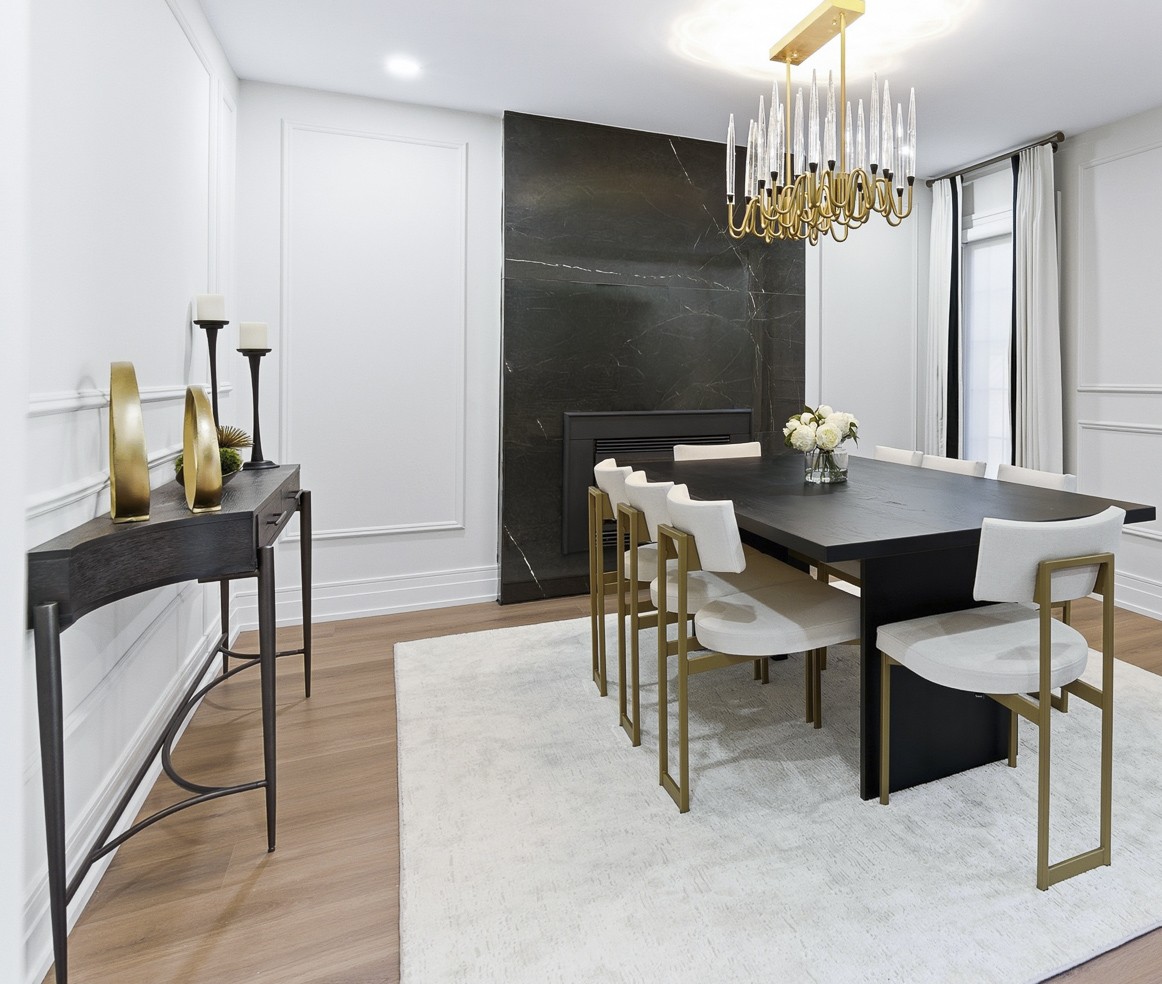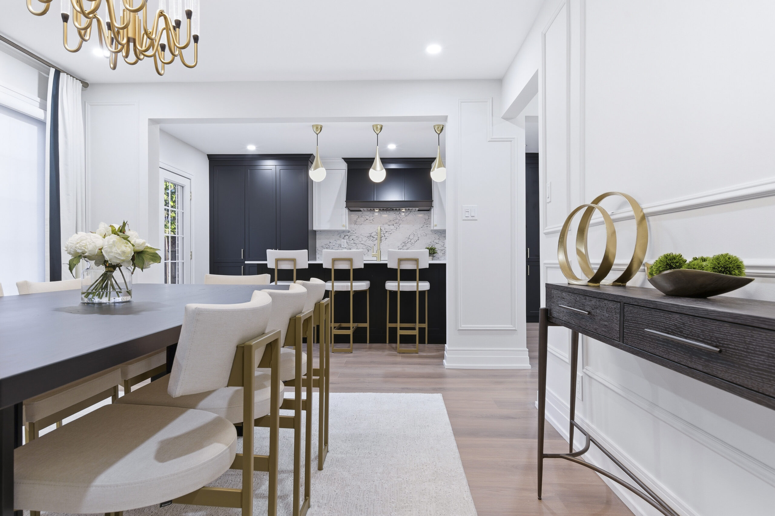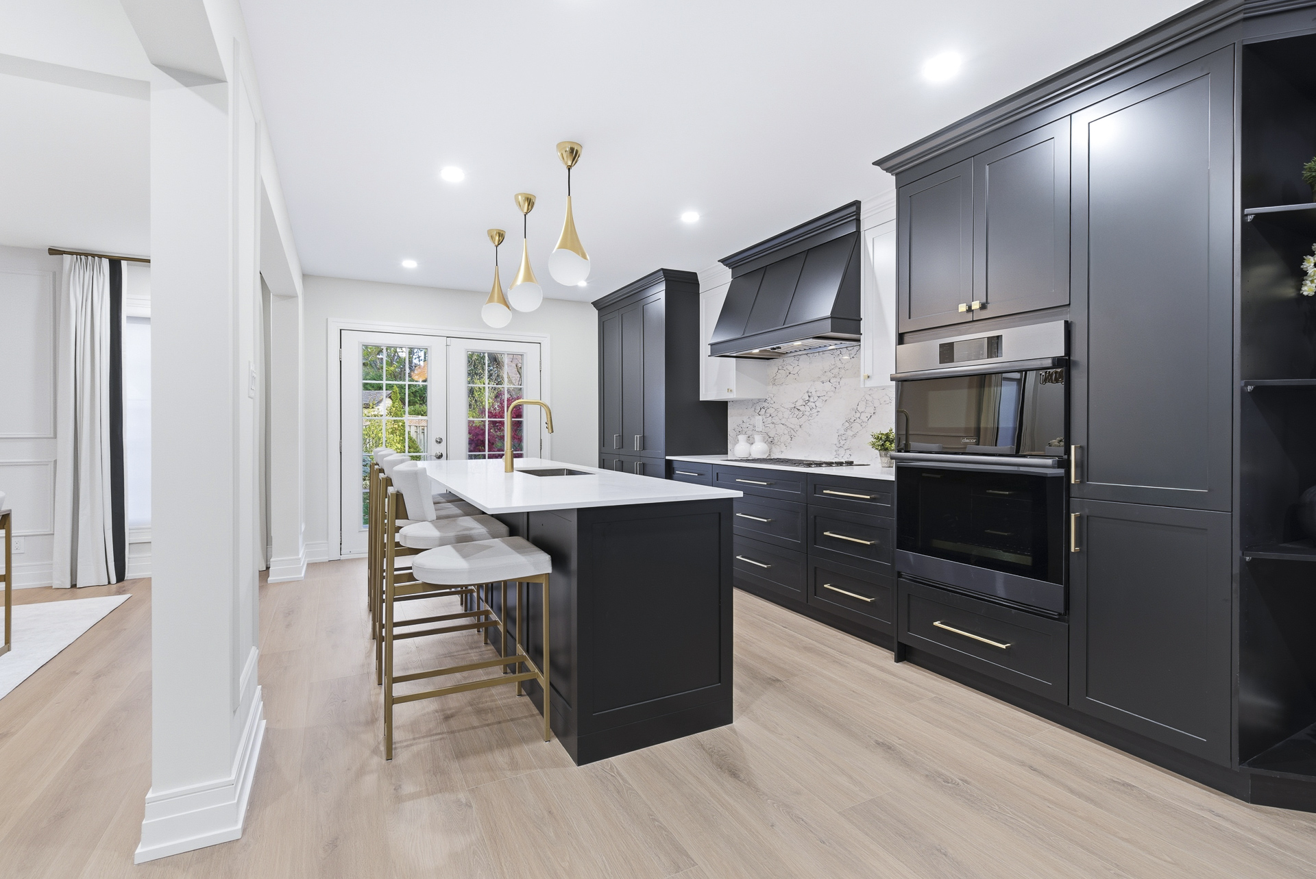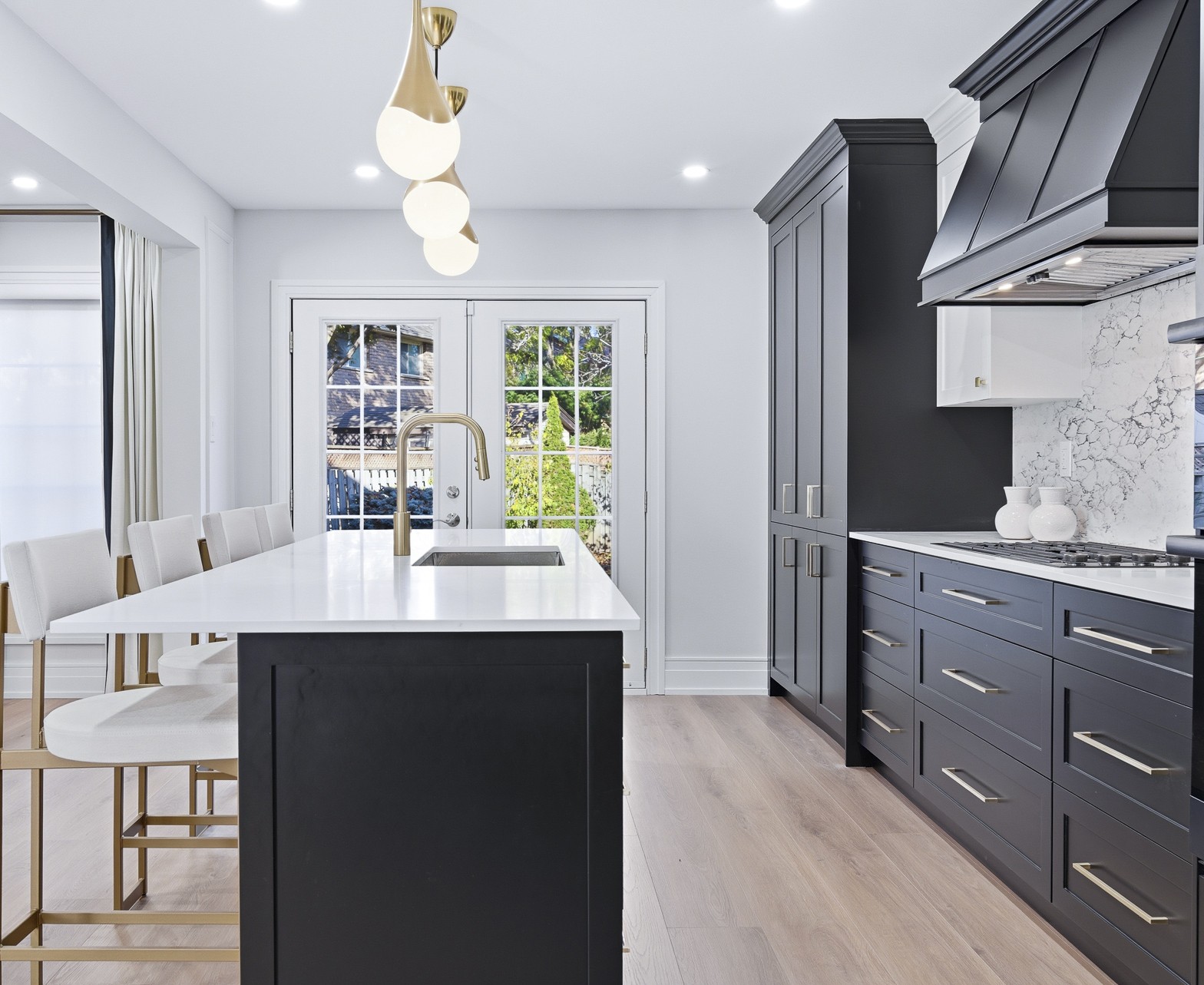 We also created a beautiful new kitchen and powder room, revamped the staircase, and added sophisticated trim work throughout. The end result is a revitalised space that Jackie and Nick absolutely love.