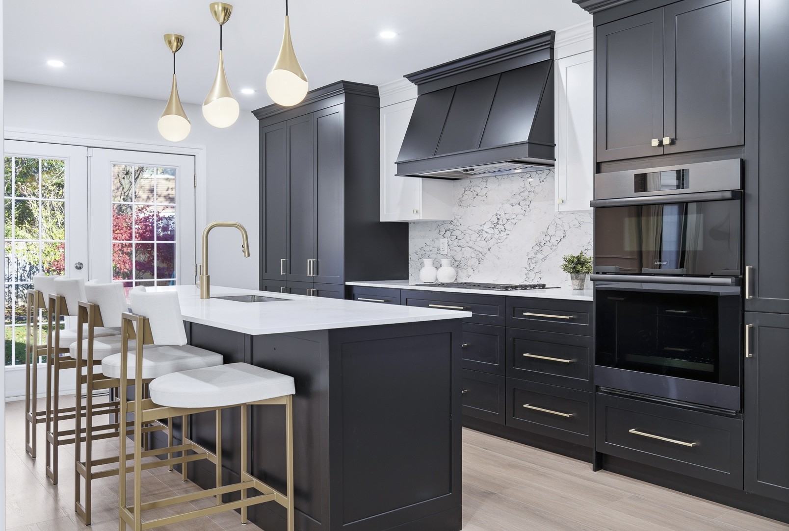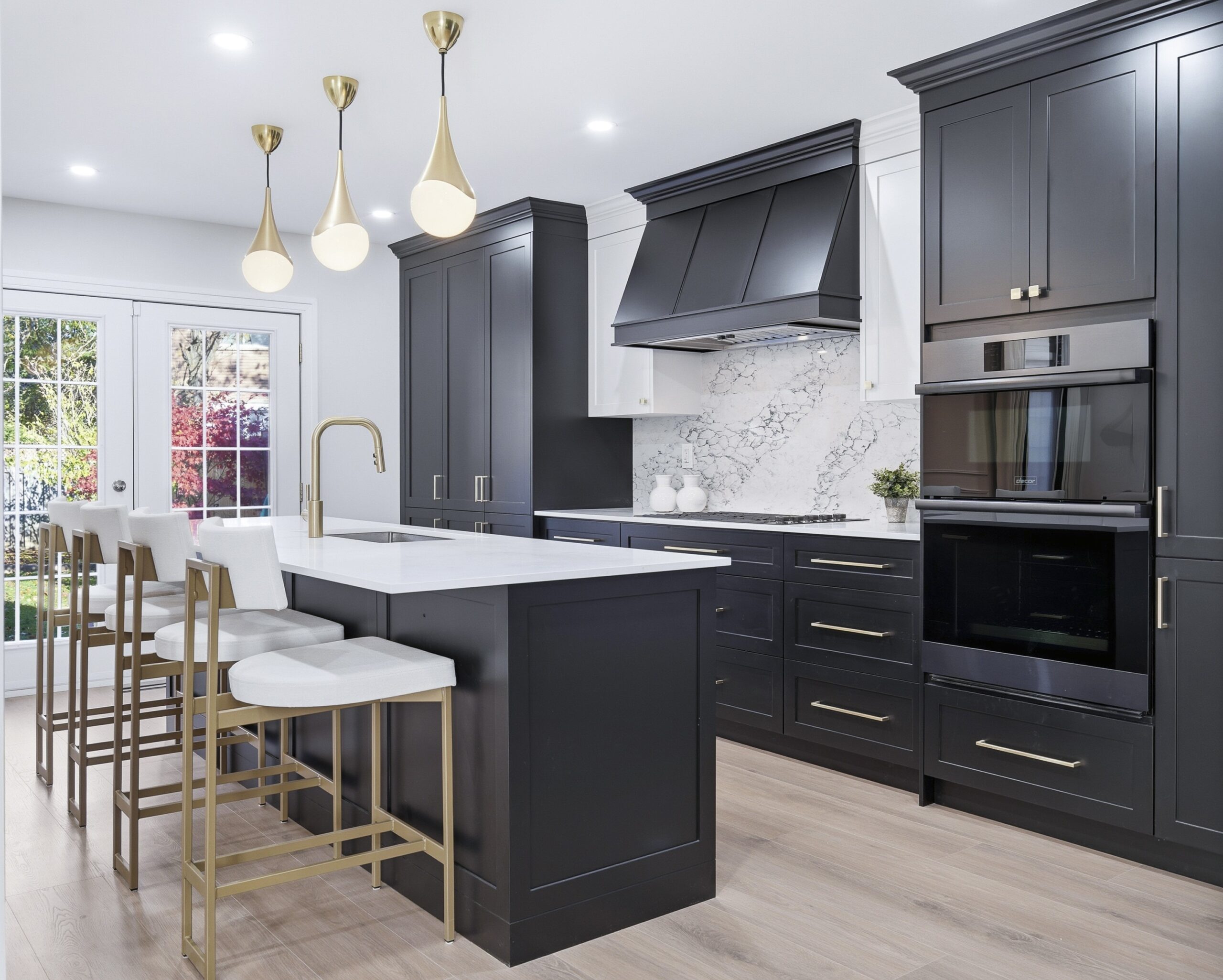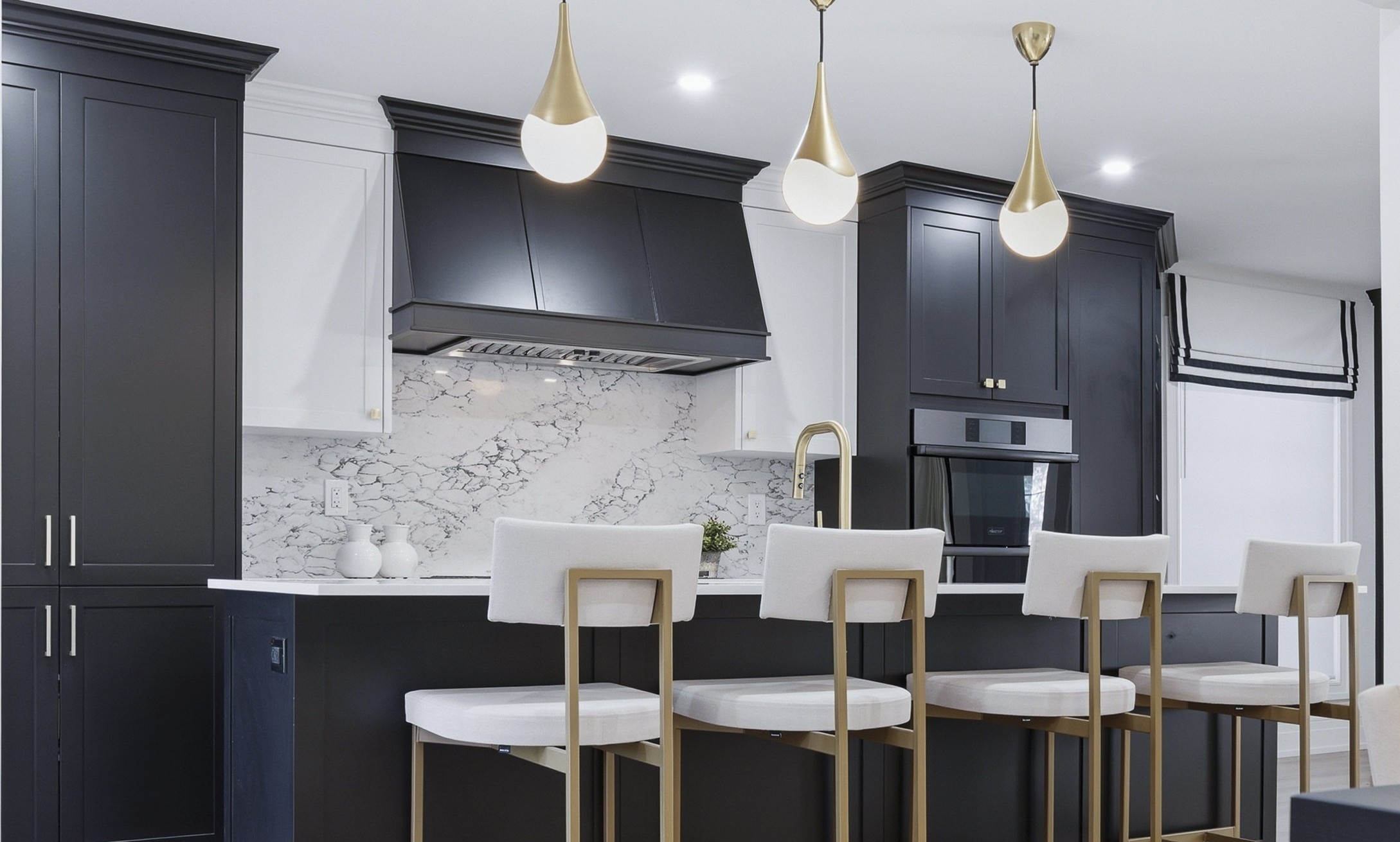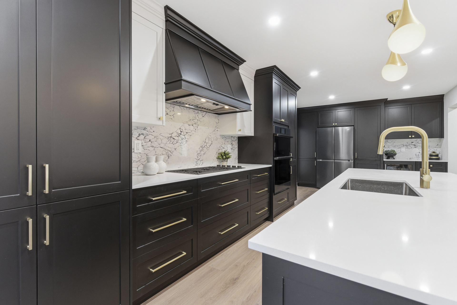 We also created a beautiful new kitchen and powder room, revamped the staircase, and added sophisticated trim work throughout. The end result is a revitalised space that Jackie and Nick absolutely love.