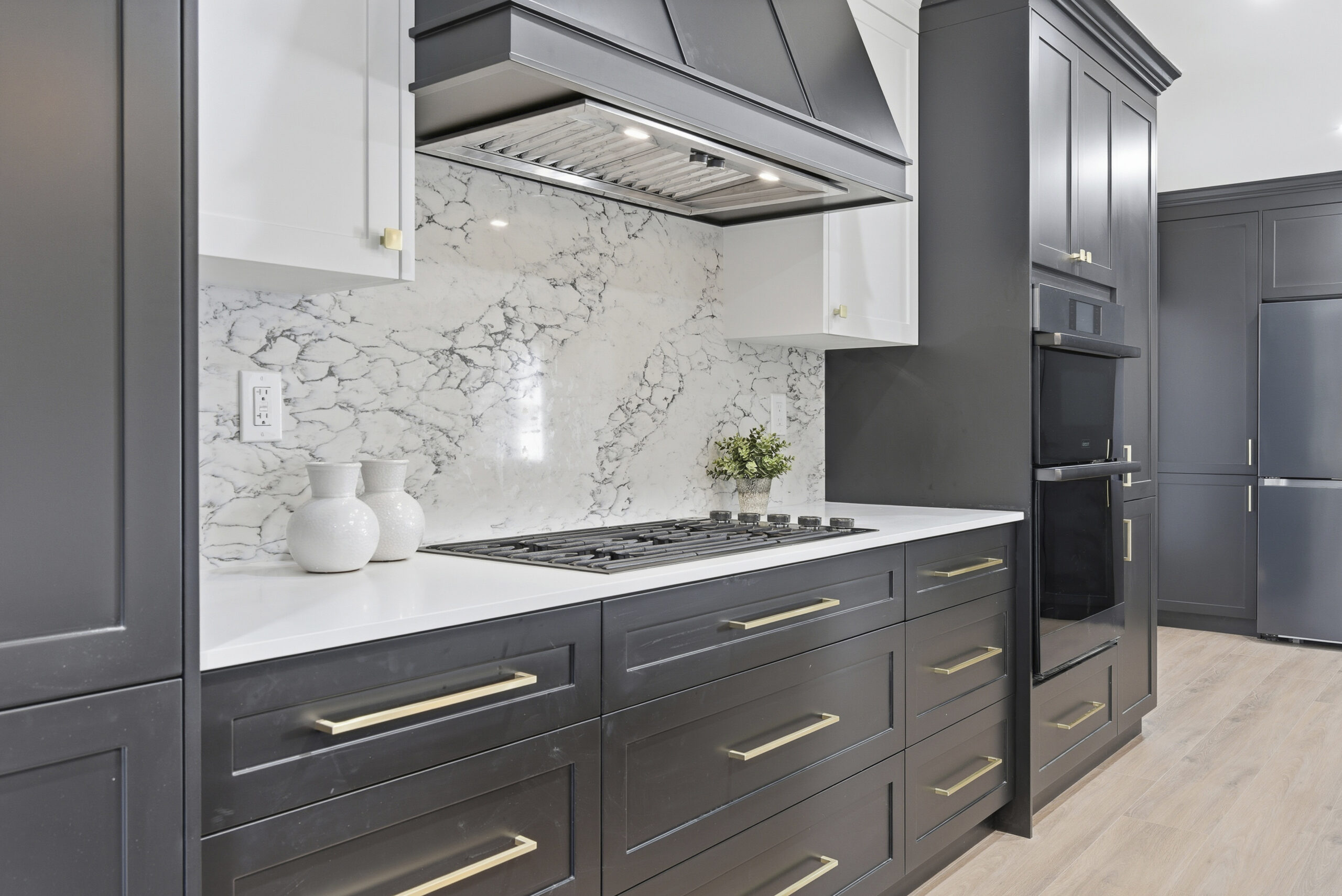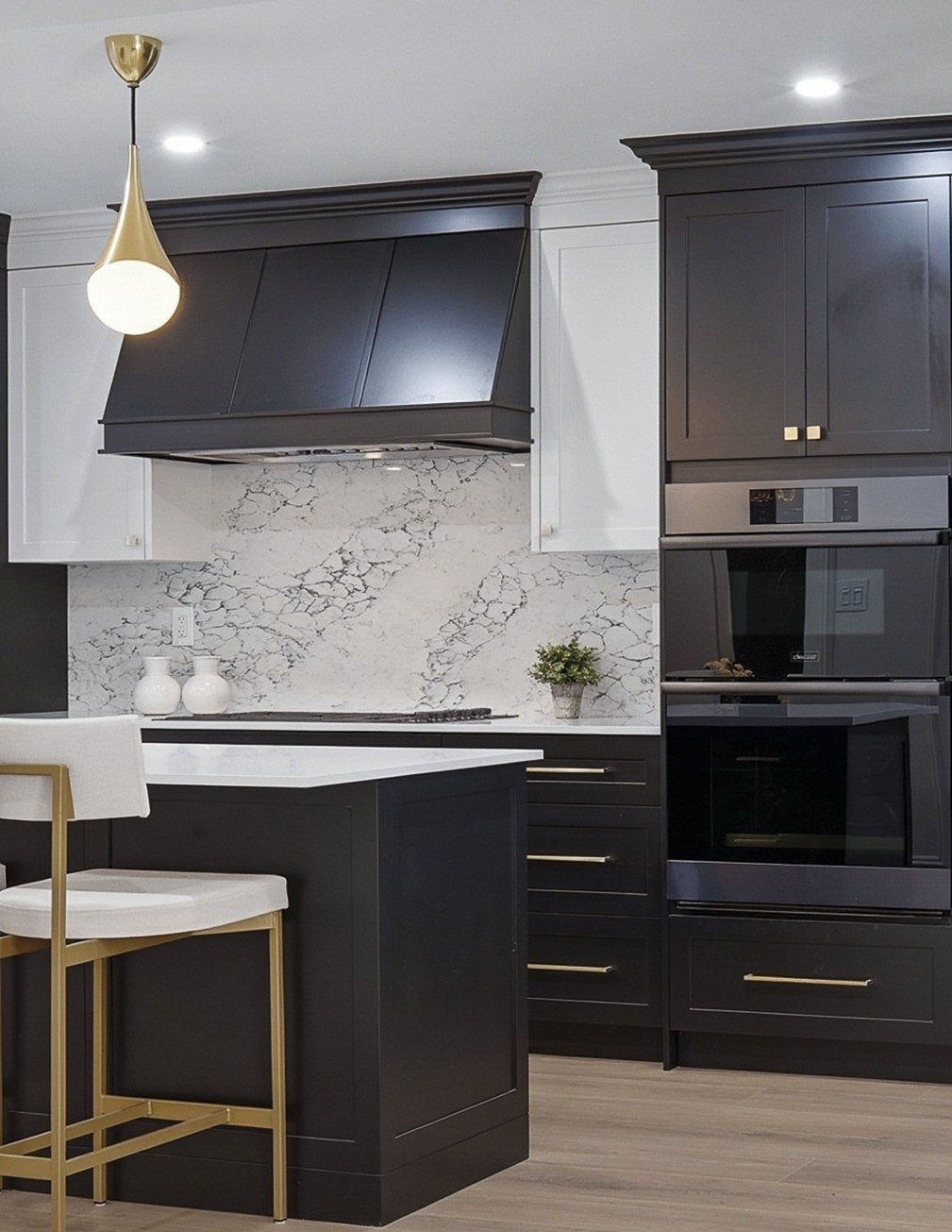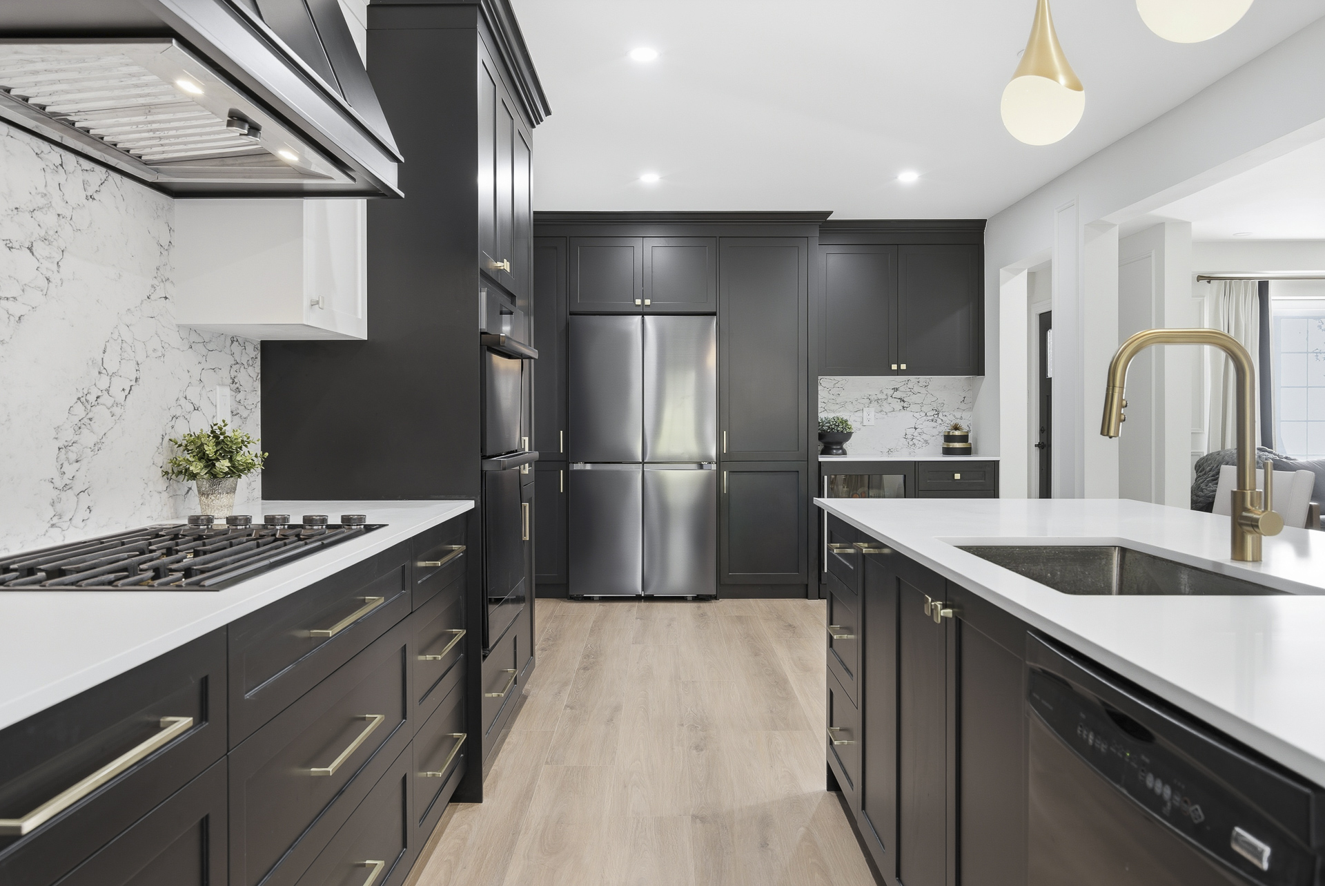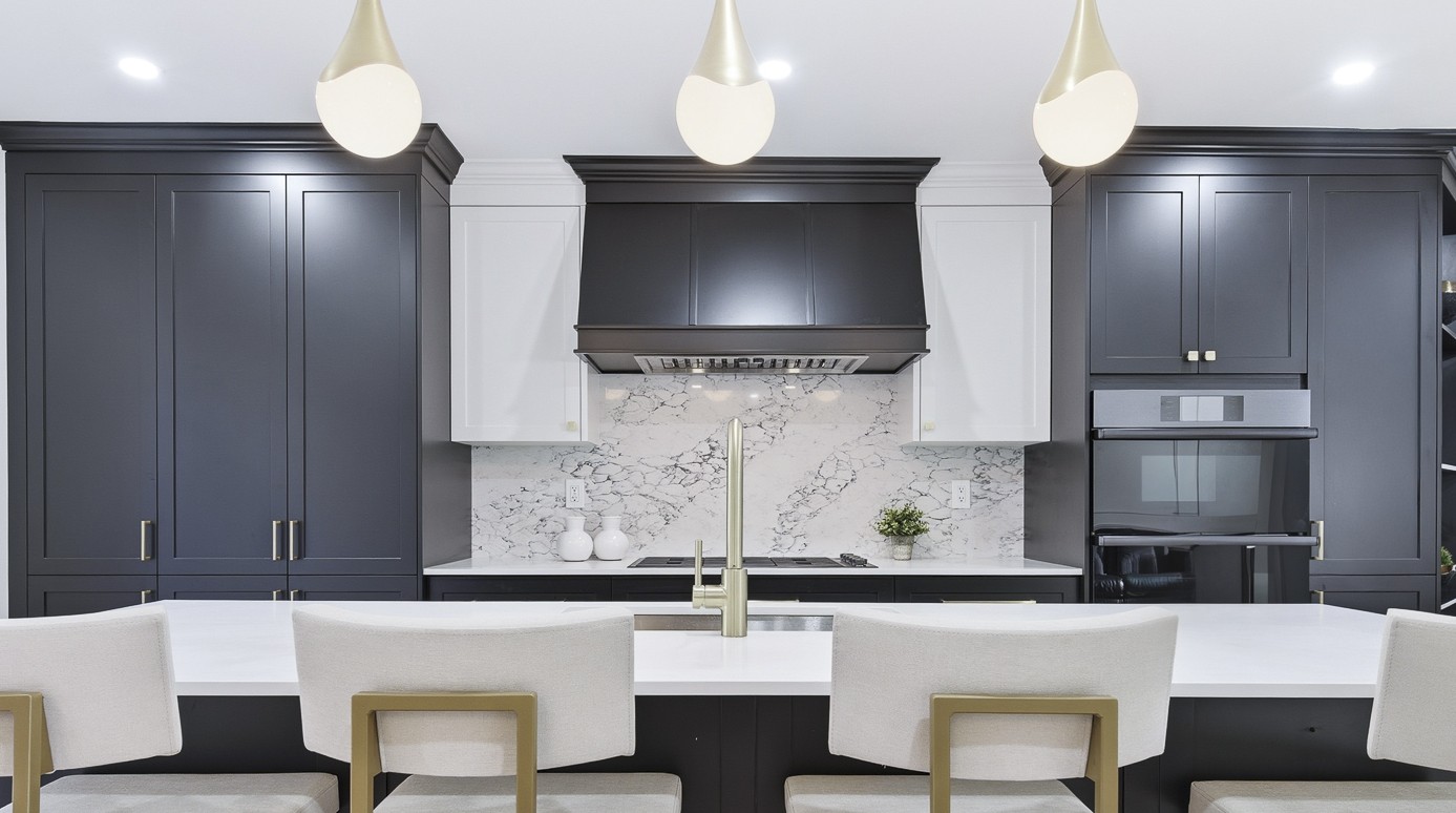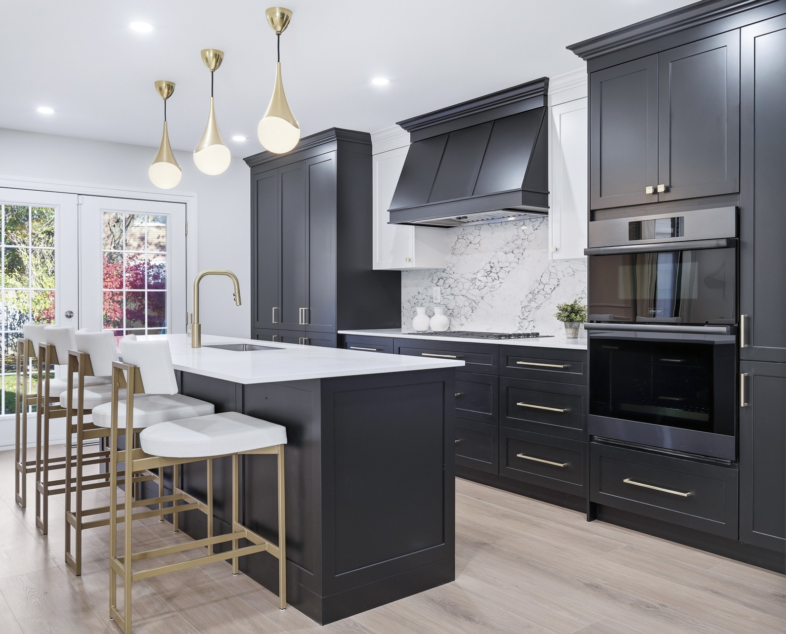 We also created a beautiful new kitchen and powder room, revamped the staircase, and added sophisticated trim work throughout. The end result is a revitalised space that Jackie and Nick absolutely love.