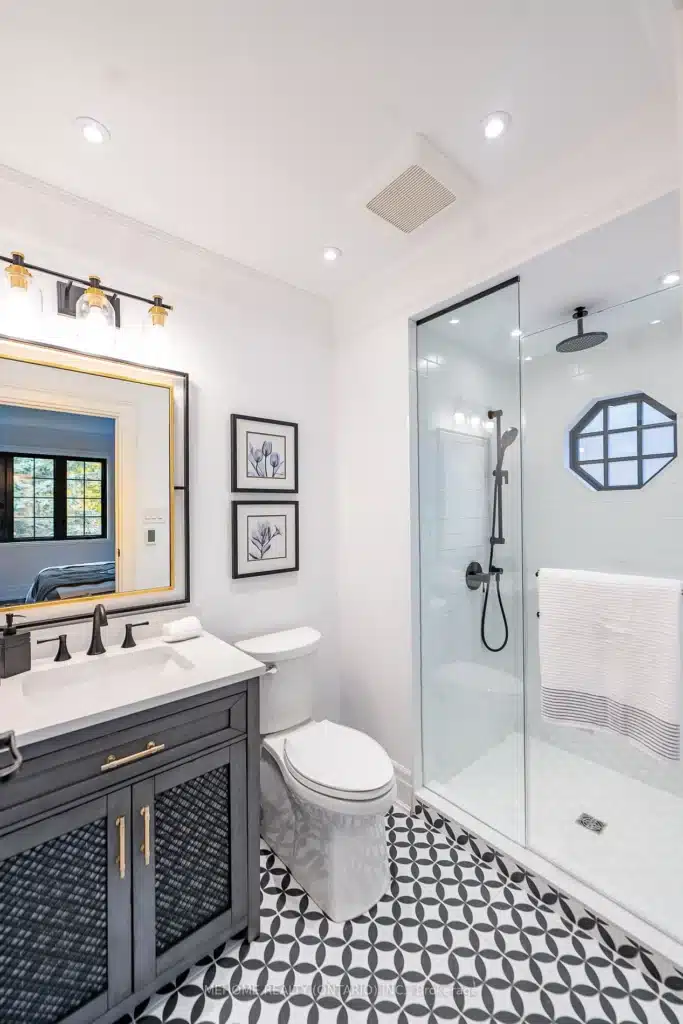 Our client aimed for a quick, profitable sale of their home. We renovated and staged the property, enlarging windows with sleek black frames, adding new flooring, fireplaces, and trim, and updating five bathrooms. These upgrades helped the client achieve their goals.