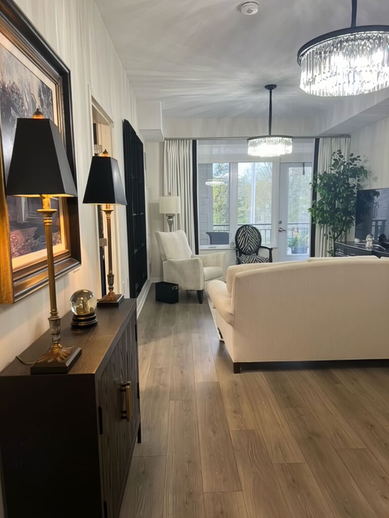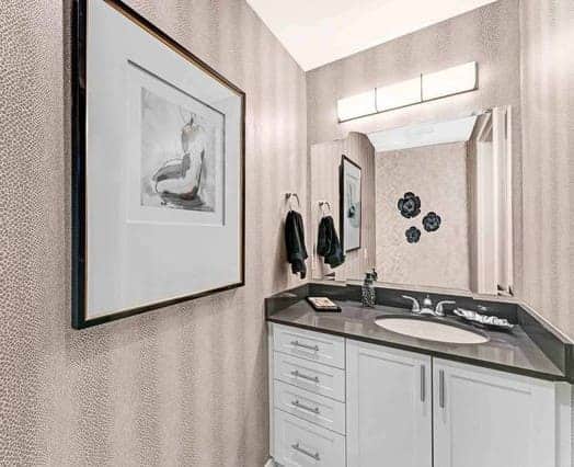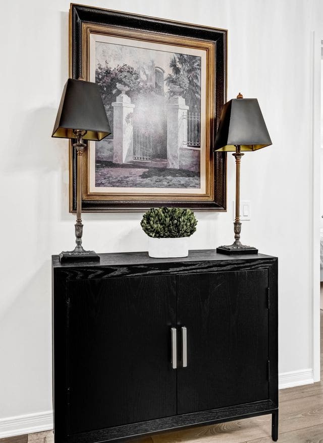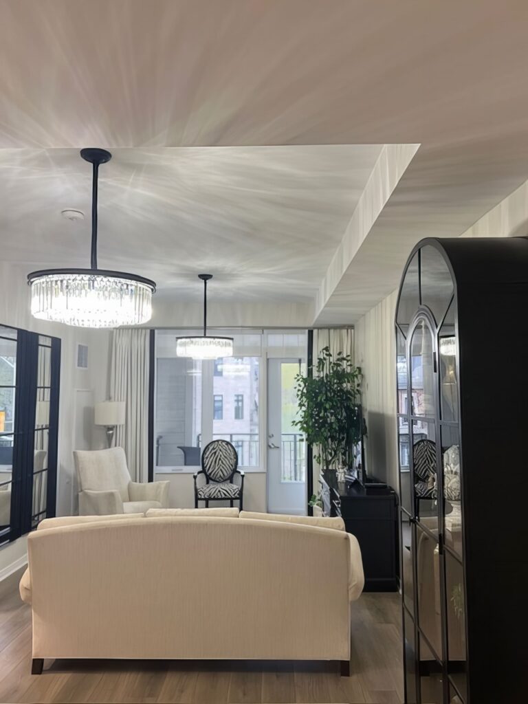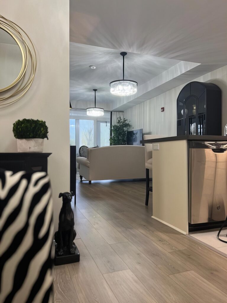 Transitioning to independent living, our client wanted a familiar, inviting space. We inventoried cherished furniture and accessories, refinished them, and combined them with new pieces. Modern classic design, improved lighting, fresh paint, and wallpapered bathrooms created a space our client truly enjoys.
