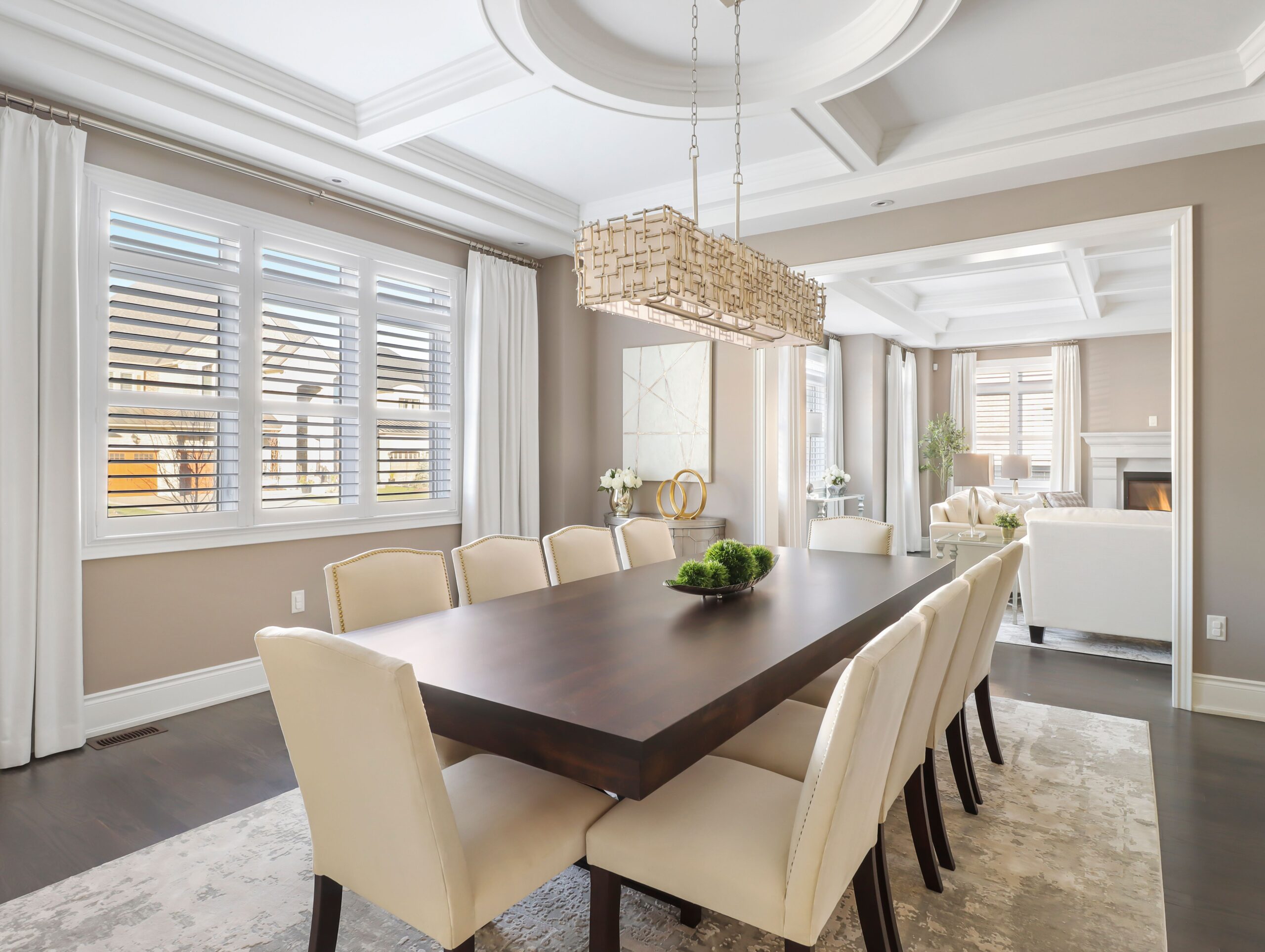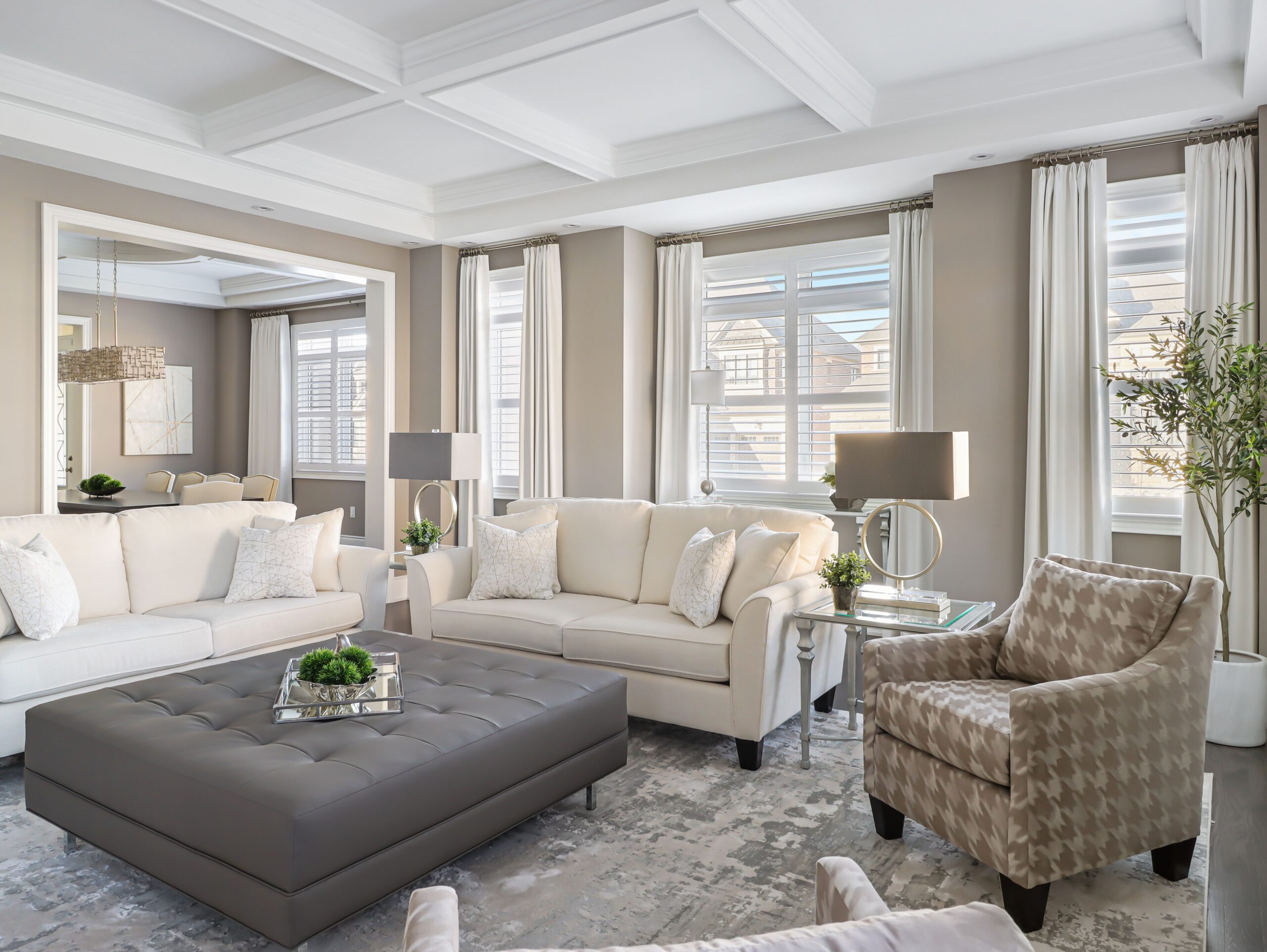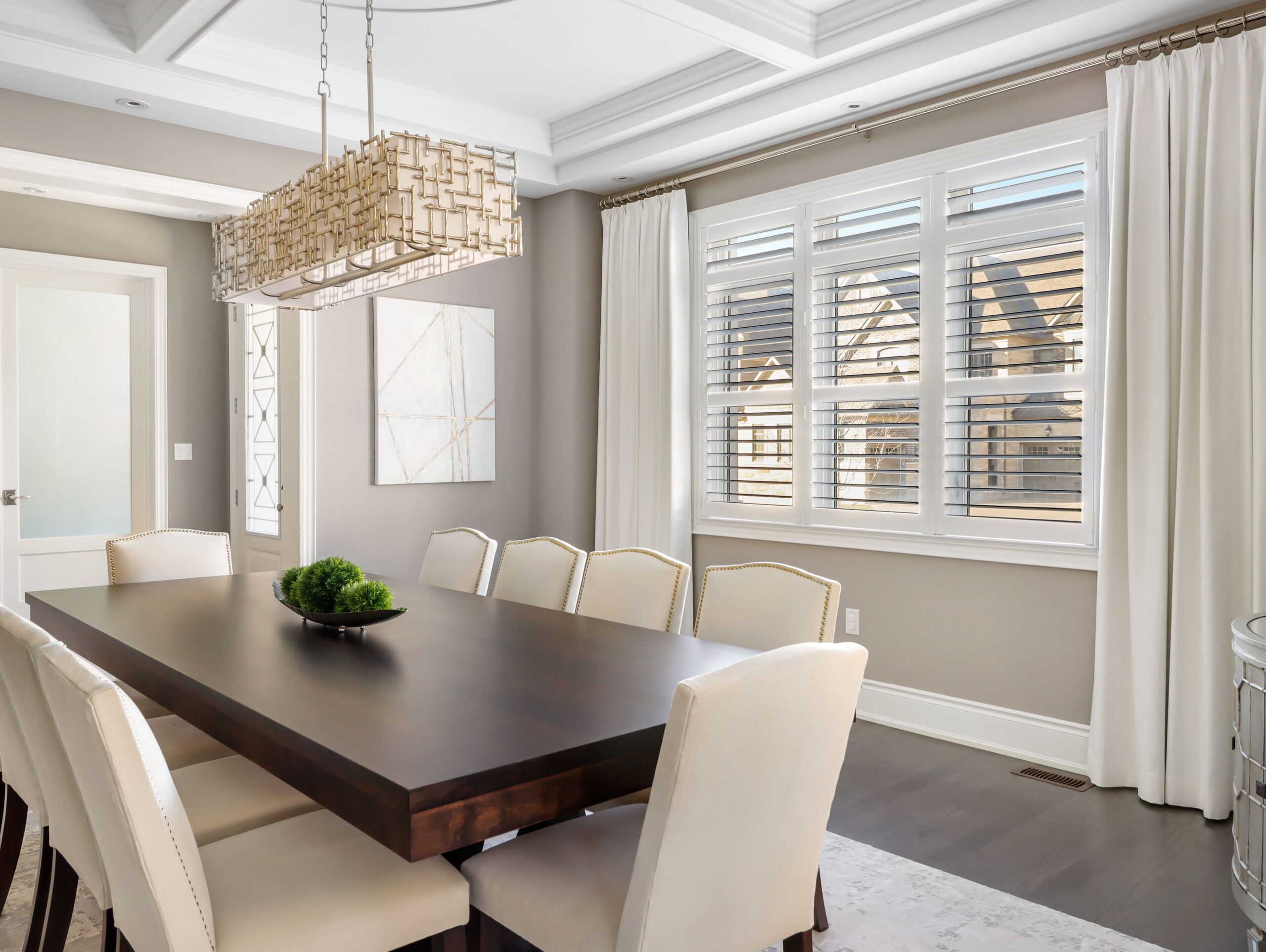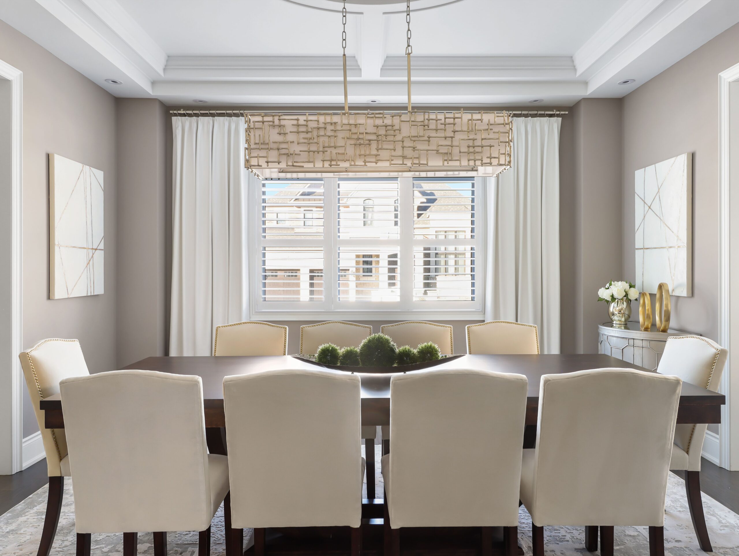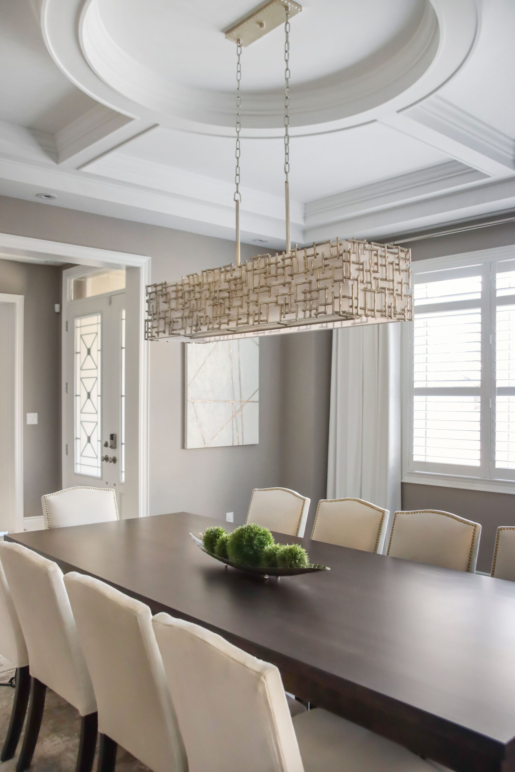 After moving into their new home, our clients asked us to furnish and decorate the main floor. We set a harmonious palette of charcoal, taupe, and ivory, and designed minimalist lighting to create a welcoming, family-friendly environment.