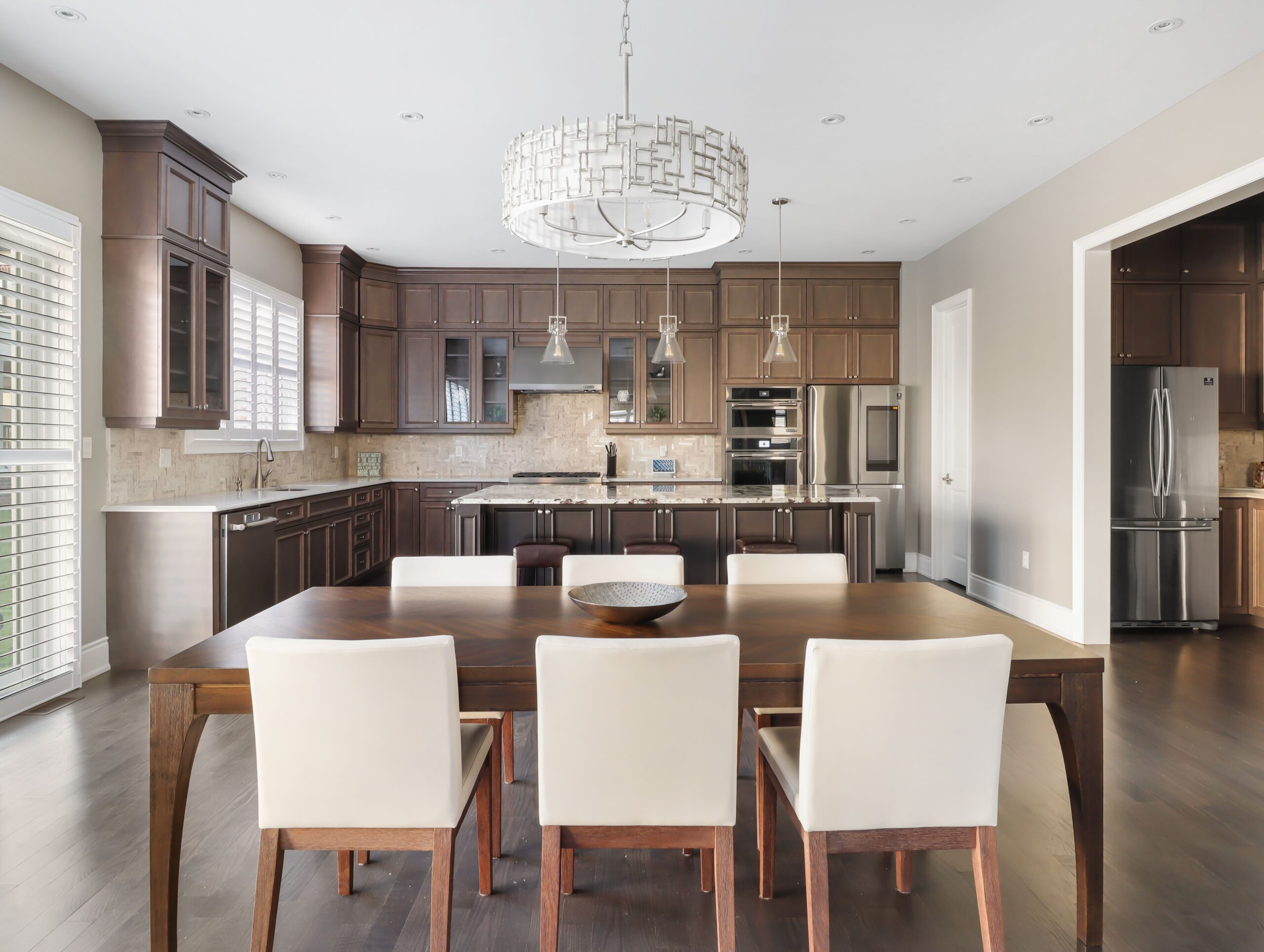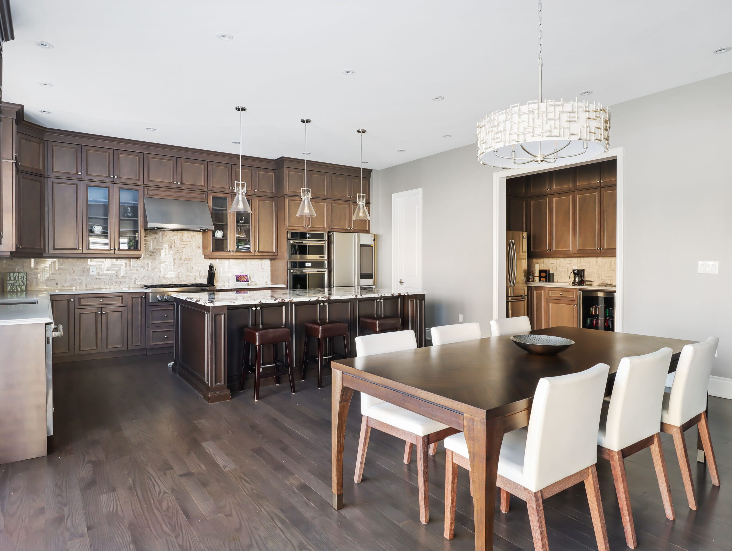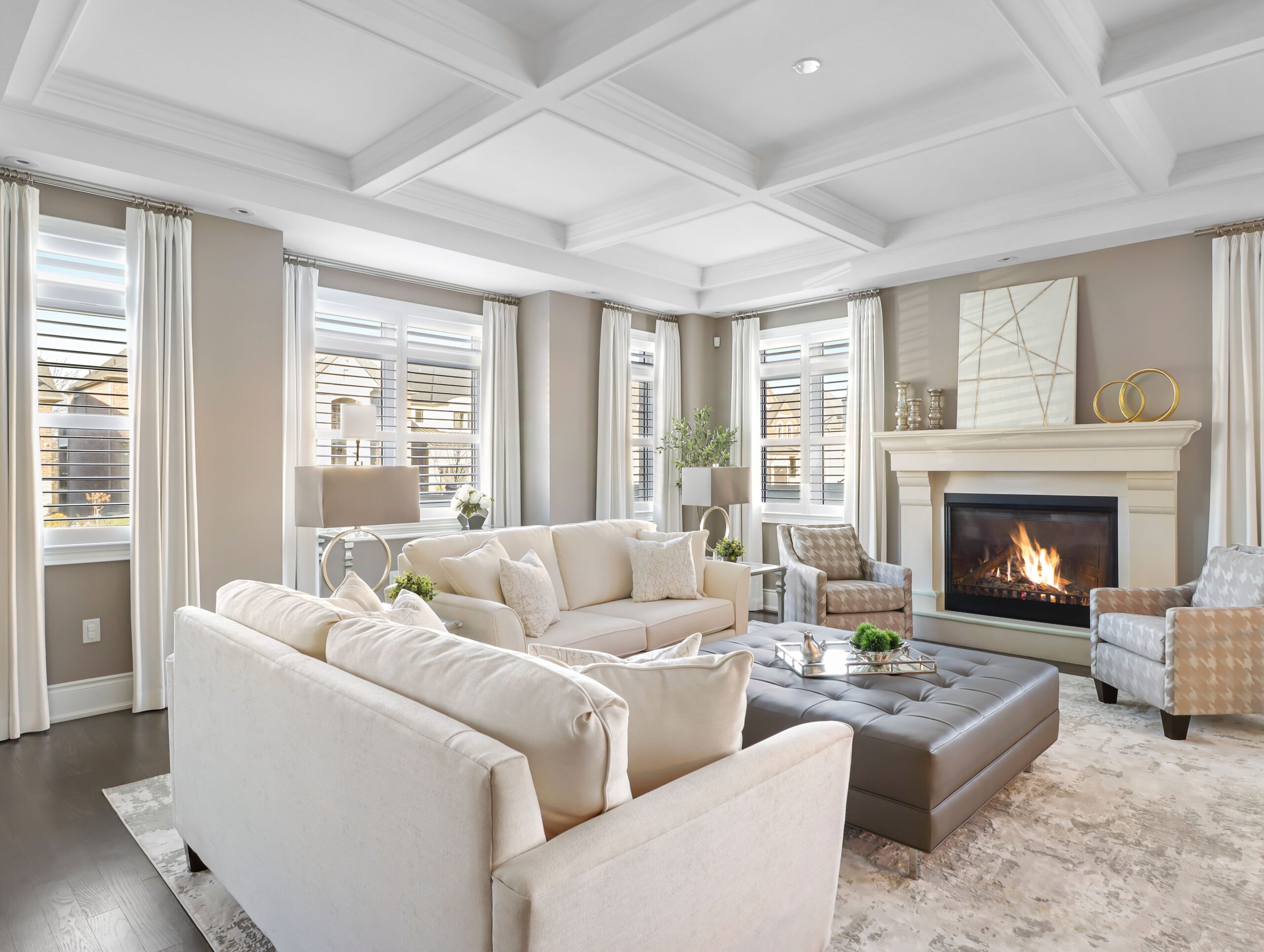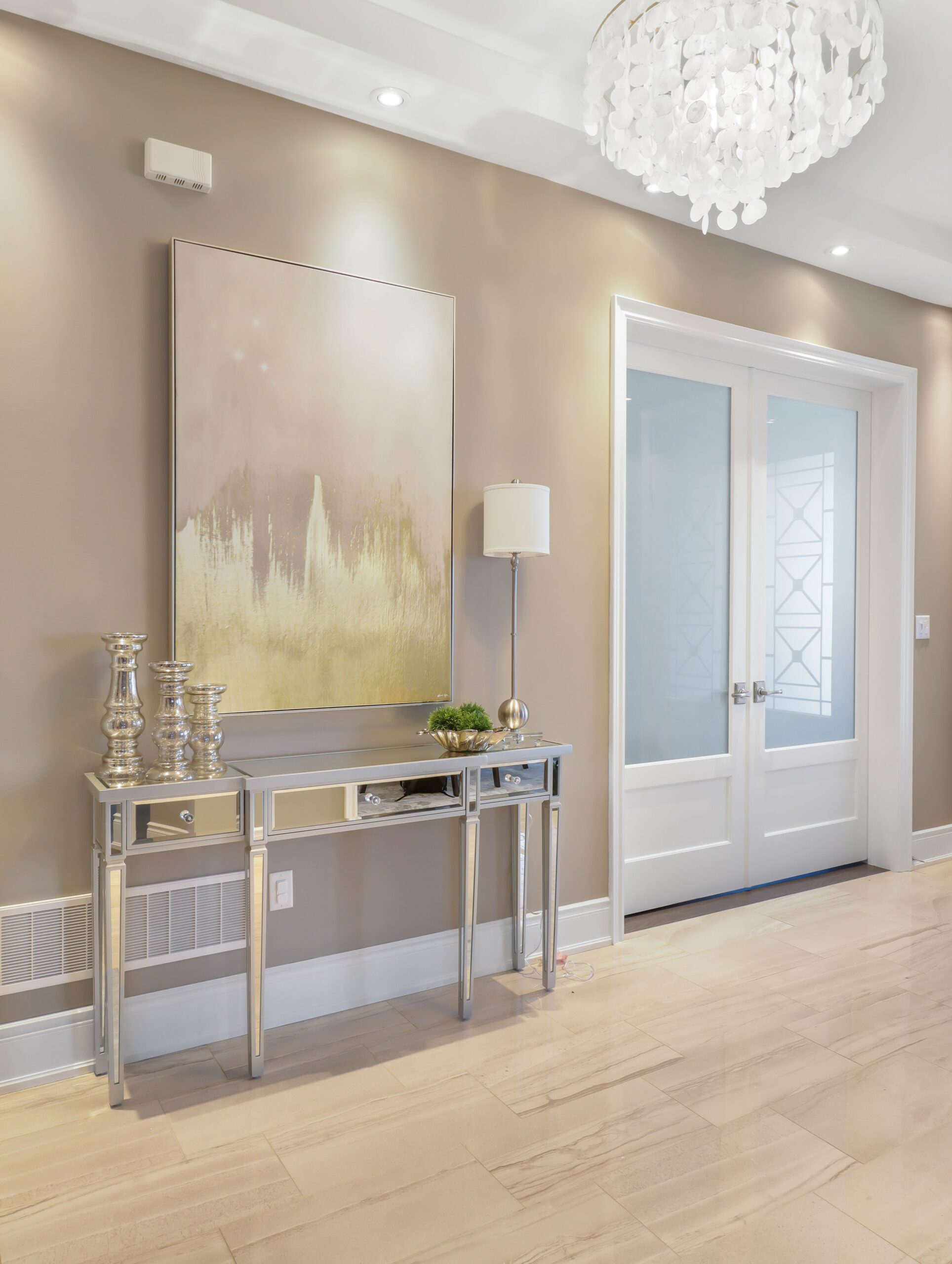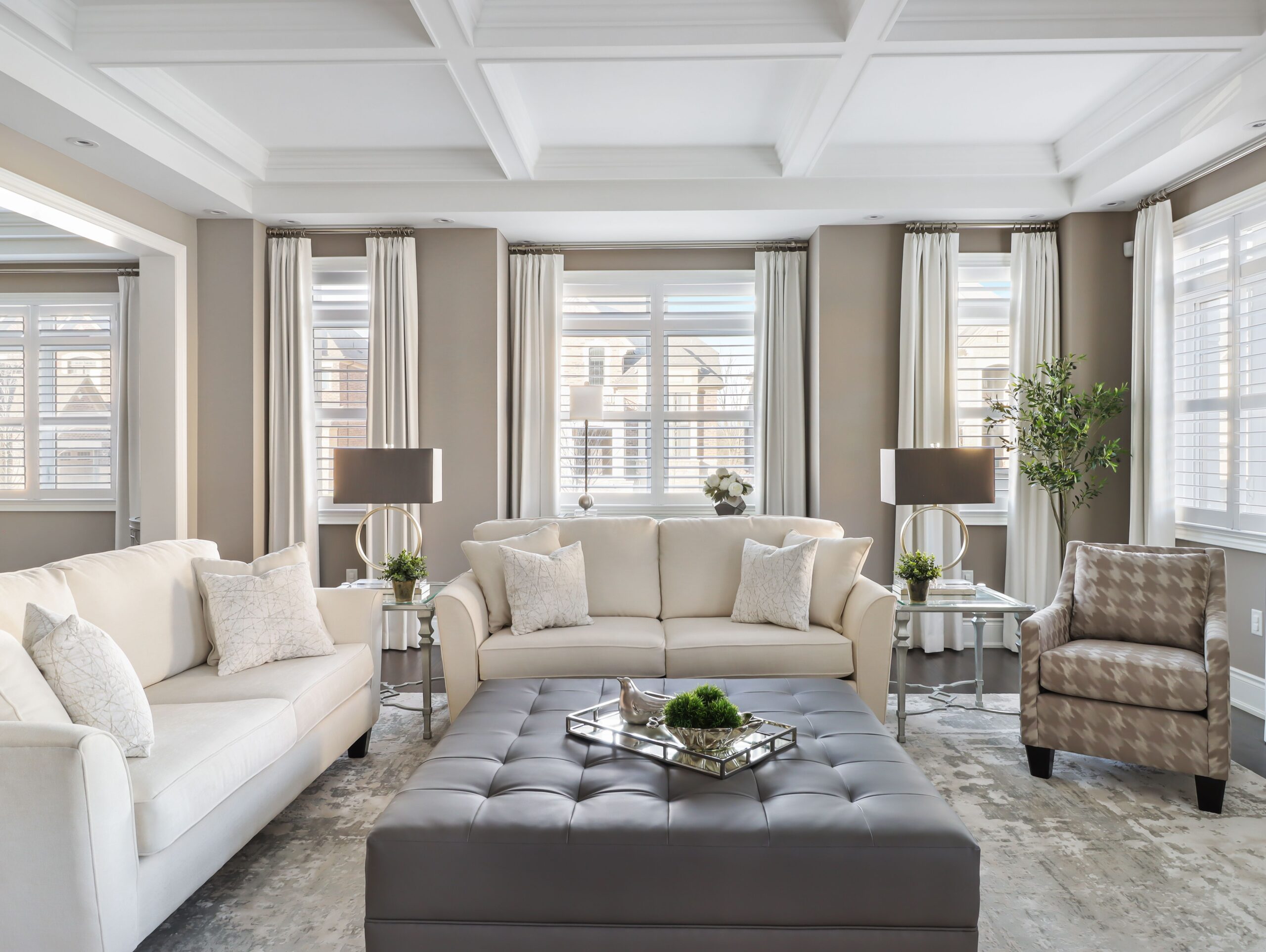 After moving into their new home, our clients asked us to furnish and decorate the main floor. We set a harmonious palette of charcoal, taupe, and ivory, and designed minimalist lighting to create a welcoming, family-friendly environment.